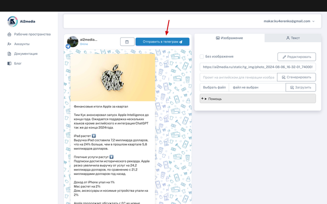 После нажатия на кнопку данный пост будет успешно отправлен в Ваш канал.