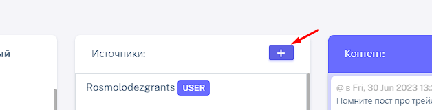Для добавления нового источника необходимо нажать на плюс в карточке 2. "Источники"